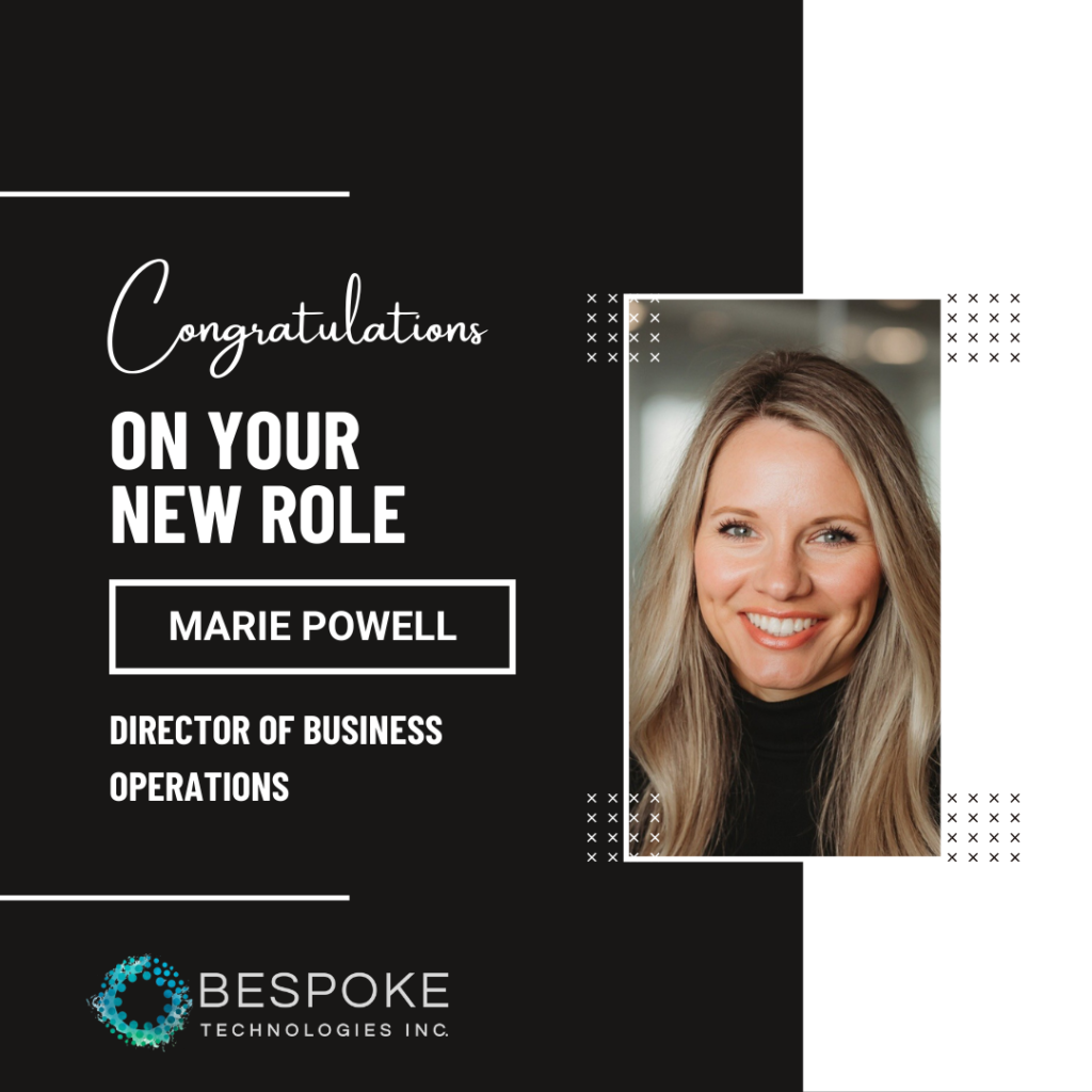 Congratulations to Marie Powell! Bespoke is proud to announce her promotion to Director of Business Operations. Marie has been an essential leader in advancing our program execution, strengthening compliance and security practices, and ensuring business operations align with Bespoke’s mission and long-term strategy.
